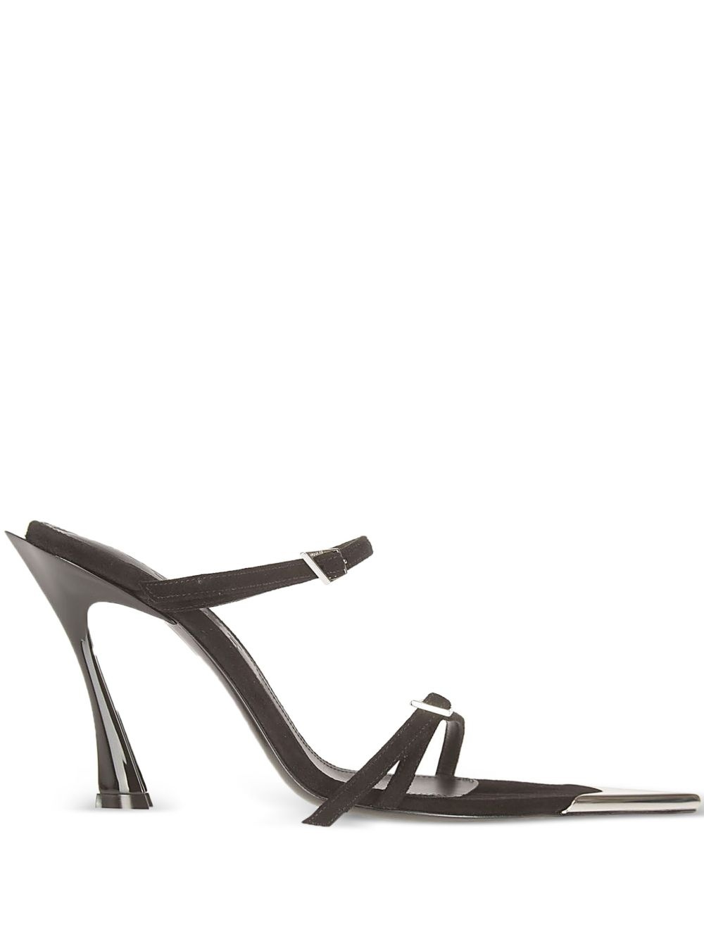 Fang 95mm leather sandals Highlights - Jet black - Goatskin - Smooth grain - Decorative buckle detail - Pointed toe - Slip-on style - Branded leather insole - 95mm sculpted heel - Leather sole Made in Italy Composition Sole: Bos Taurus 80%, Rubber 20% Outer: Goat Skin 100% Lining: Goat Skin 100%
