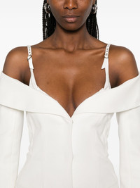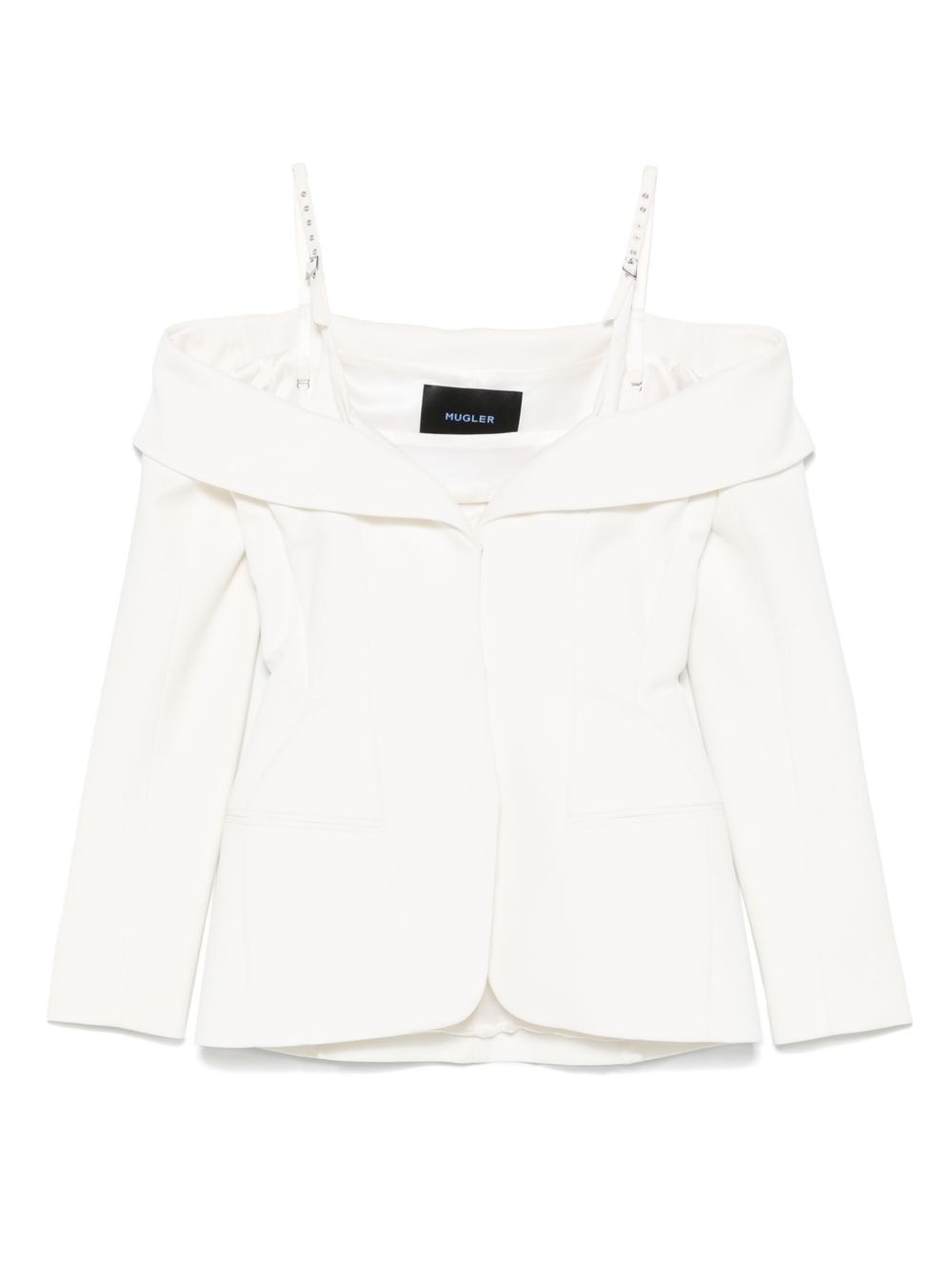 fitted jacket Highlights - White - Concealed front press-stud fastening - Adjustable shoulder straps - Full lining - Cut-out sleeves Imported Composition Outer: Polyamide 83%, Viscose 78%, Virgin Wool 22%, Elastane 17% Lining: Cupro 100% SIZE & FIT Model measurements Height 5 ft 10 in(1.78 m) Bust/Chest 31.49 in(80 cm) Hips 37 in(94 cm) Waist 23.62 in(60 cm) FittingInformation Designed for a close fit throughout Made from a midweight fabric