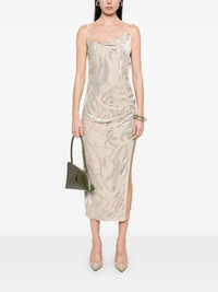 floral-velvet asymmetric gown Highlights - Light beige - Buckle fastening - Side slit - Adjustable shoulder straps - Ruched detailing Imported Composition Outer: Viscose 72%, Silk 28% Lining: Viscose 95%, Elastane 5% SIZE & FIT Model measurements Height 5 ft 10 in(1.78 m) Bust/Chest 33.46 in(85 cm) Hips 36.22 in(92 cm) Waist 23.22 in(59 cm) FittingInformation Designed for a close fit throughout The adjustable shoulder straps allow for a preferred fit when worn Made from a midweight fabric Washing instructions Dry Clean Only