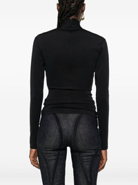 high-neck long-sleeve T-shirt Highlights - Black - High neck - Long sleeves - Zip fastening Imported Composition Recycled Polyamide 75%, Elastane 25% SIZE & FIT Model measurements Height 5 ft 11 in(1.8 m) Bust/Chest 32.67 in(83 cm) Hips 36.22 in(92 cm) Waist 24.4 in(62 cm) Washing instructions Machine Wash