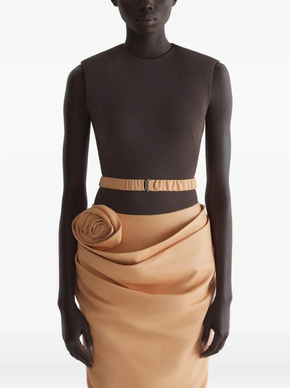 jersey body Highlights - Brown - Back zip fastening - Sleeveless Imported Composition Outer: Fabric 100%