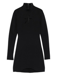 keyhole-neck long-sleeve dress Highlights - Black - High neck - Keyhole detail - Long sleeves - Curved hem Imported Composition Recycled Polyamide 75%, Spandex/Elastane 25% SIZE & FIT Model measurements Height 5 ft 10 in(1.77 m) Bust/Chest 32.28 in(82 cm) Hips 35.03 in(89 cm) Waist 25.19 in(64 cm) Washing instructions Machine Wash
