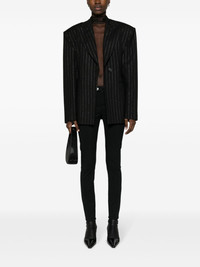 logo-embossed sheer bodysuit In keeping with Mugler’s daring visual identity, this black bodysuit is crafted from sheer tulle. It’s detailed with a flocked logo at the high neck. Highlights - Black - Tulle - Sheer - Logo-embossed at the neck - Mock neck - Concealed rear zip fastening - Branded zip puller - Press-stud fastening - Long sleeves - Thumb slots - Just a reminder that this piece must be tried on over your own garments. Imported Composition Outer: Polyamide 77%, Elastodiene 23% Lining: Cotton 100% SIZE & FIT Model measurements Height 5 ft 11 in(1.8 m) Bust/Chest 32.67 in(83 cm) Hips 36.22 in(92 cm) Waist 24.4 in(62 cm) FittingInformation Designed for a close fit throughout The sleeves are constructed with additional length and built-in thumb loops that allow for movement and a secure fit Made from a lightweight stretch fabric, this piece offers elasticity and flexibility when worn This piece fits true to size – take your usual size Measurement SLEEVE LENGTH 20.47 in(52 cm) BUST 23.62 in(60 cm) Washing instructions Machine Wash