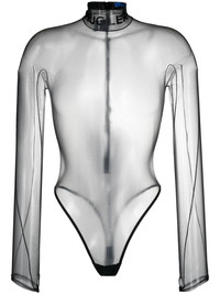 logo-embossed sheer bodysuit
