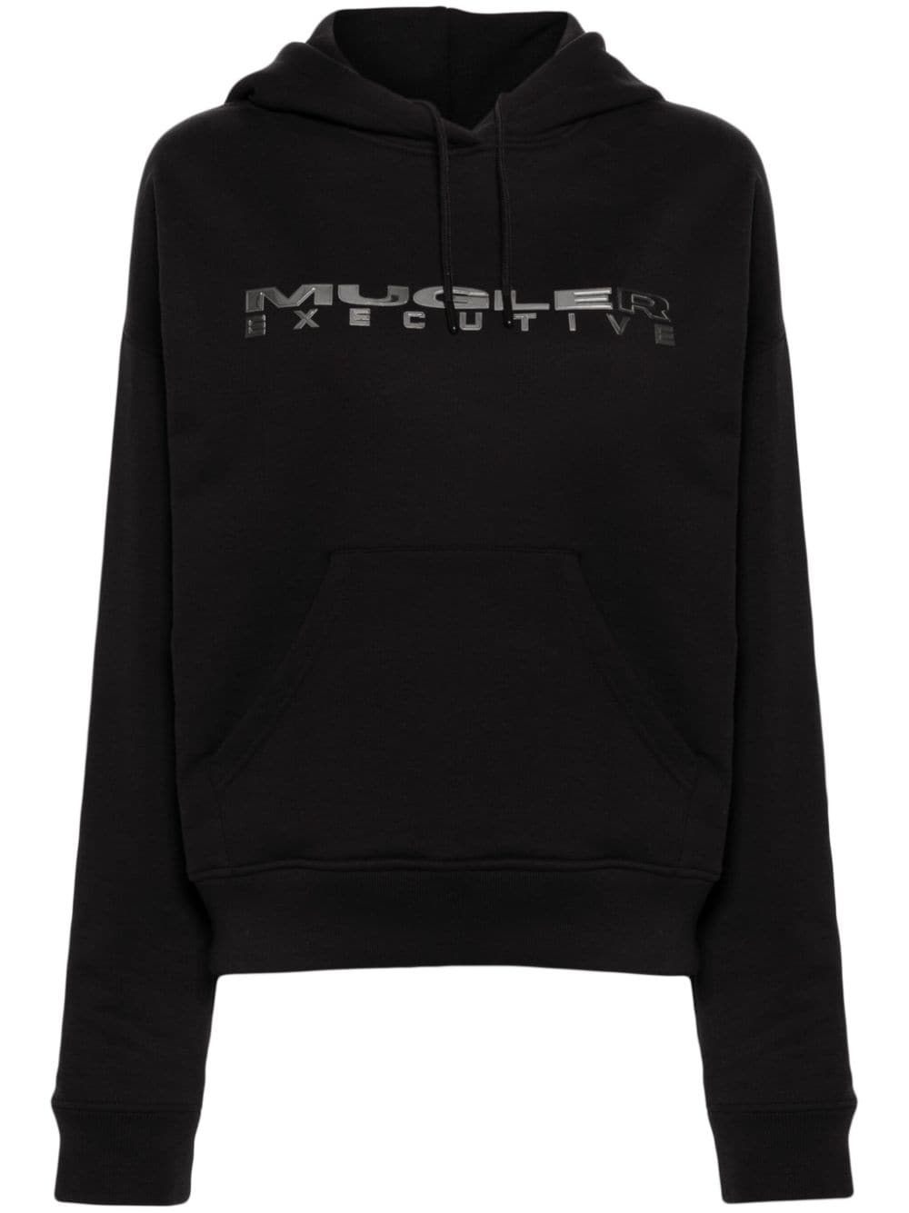 logo-lettering jersey hoodie Highlights - Black - Cotton blend - Jersey texture - Drawstring hood - Drop shoulder - Long sleeves - Logo lettering - Front pouch pocket - Ribbed cuffs and hem Imported Composition Cotton 80%, Polyester 20% SIZE & FIT Model measurements Height 5 ft 10 in(1.78 m) Bust/Chest 32.67 in(83 cm) Hips 35.43 in(90 cm) Waist 23.22 in(59 cm) FittingInformation Designed to be unstructured, offering a loose fit throughout Made from a midweight non-stretch fabric, this piece offers minimal elasticity when worn This piece fits true to size – take your usual size Washing instructions Dry Clean Only