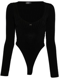 logo-plaque ribbed bodysuit Highlights - Black - Stretch-cotton - Ribbed knit - Scoop neck - Long sleeves - Silver-tone logo plaque at the chest - Internal logo tag - Press-stud fastening - Just a reminder that this piece must be tried on over your own garments. Imported Composition Outer: Viscose 88%, Spandex/Elastane 11%, Polyamide 1% Lining: Cotton 95%, Spandex/Elastane 5% SIZE & FIT Model measurements Height 5 ft 10 in(1.77 m) Bust/Chest 32.28 in(82 cm) Hips 35.03 in(89 cm) Waist 25.19 in(64 cm) FittingInformation Designed for a very close and sculpting fit Made with a midweight knit, this piece offers some stretch This piece fits true to size – take your usual size Washing instructions Hand Wash