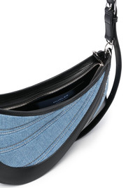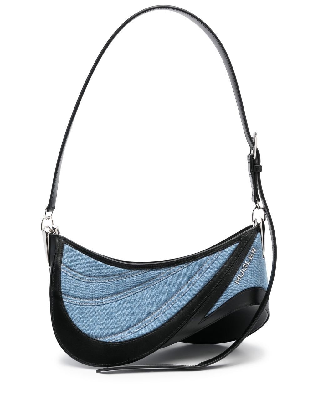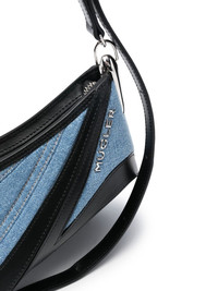 medium Spiral Curve 01 denim crossbody bag Mugler’s affinity for contoured silhouettes reaches beyond its ready-to-wear offering, as demonstrated by this Spiral Curve 01 bag. Crafted from denim and leather, the asymmetric shape mimics the striking geometric cut-outs prevalent in each of the label’s collections. Made in Italy Composition Outer: Calf Leather 100%, Fabric 100% SIZE & FIT Model measurements Height 5 ft 11 in(1.8 m) Bust/Chest 33.07 in(84 cm) Hips 37.4 in(95 cm) Waist 25.19 in(64 cm) Measurement DEPTH 5.51 in(14 cm) HEIGHT 6.29 in(16 cm) STRAP 19.29 in(49 cm) WIDTH 10.62 in(27 cm)