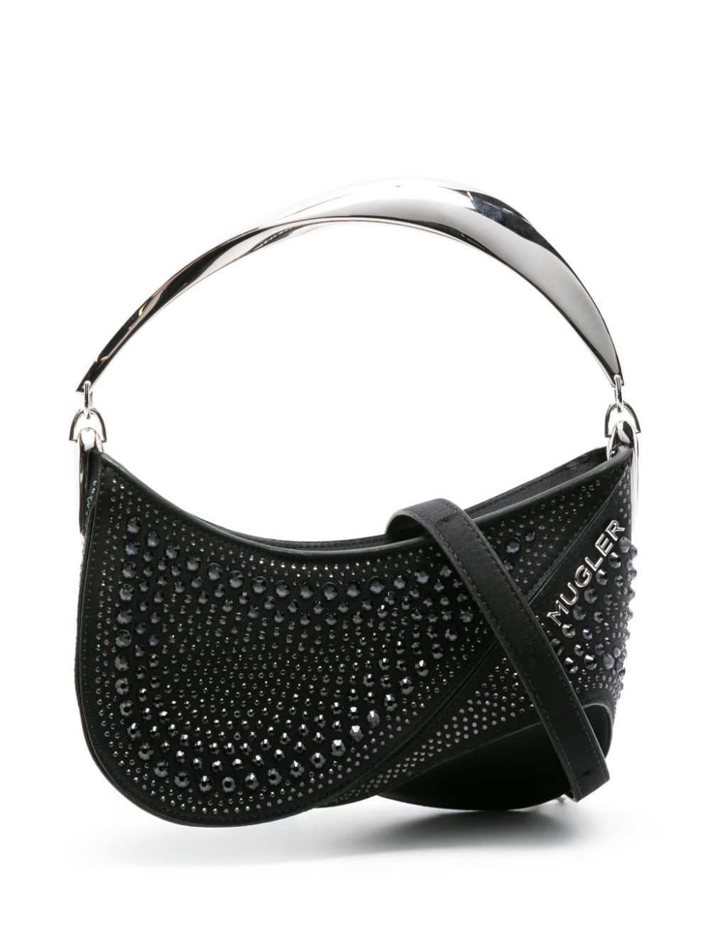 medium Spiral Curve 01 shoulder bag Highlights - Black - Satin finish - Glass crystal embellishment - Silver-tone logo lettering - Top zip fastening - Single top handle - Adjustable detachable shoulder strap - Main compartment - Internal logo stamp - Internal card slot - Silver-tone hardware Made in Italy Composition Outer: glass 100%, Fabric 100% SIZE & FIT Model measurements Height 5 ft 10 in(1.78 m) Bust/Chest 31.49 in(80 cm) Hips 37 in(94 cm) Waist 23.62 in(60 cm) Measurement DEPTH 3.93 in(10 cm) HANDLE 3.54 in(9 cm) HEIGHT 3.93 in(10 cm) STRAP 18.89 in(48 cm) WIDTH 8.66 in(22 cm)