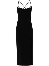 metallic-details midi dress Highlights - Black - Stretch-design - Scoop neck - Metallic details - Thin shoulder straps - Side slit - Rear criss-cross straps - Partial lining - Straight hem - Mid-length - Concealed rear hook and zip fastening Imported Composition Viscose 96%, Elastane 4% SIZE & FIT Model measurements Height 5 ft 10 in(1.78 m) Bust/Chest 33.07 in(84 cm) Hips 36.61 in(93 cm) Waist 24.8 in(63 cm) FittingInformation Designed for a close fit throughout Made from a midweight stretch fabric, this piece offers elasticity and flexibility when worn This piece fits true to size – take your usual size