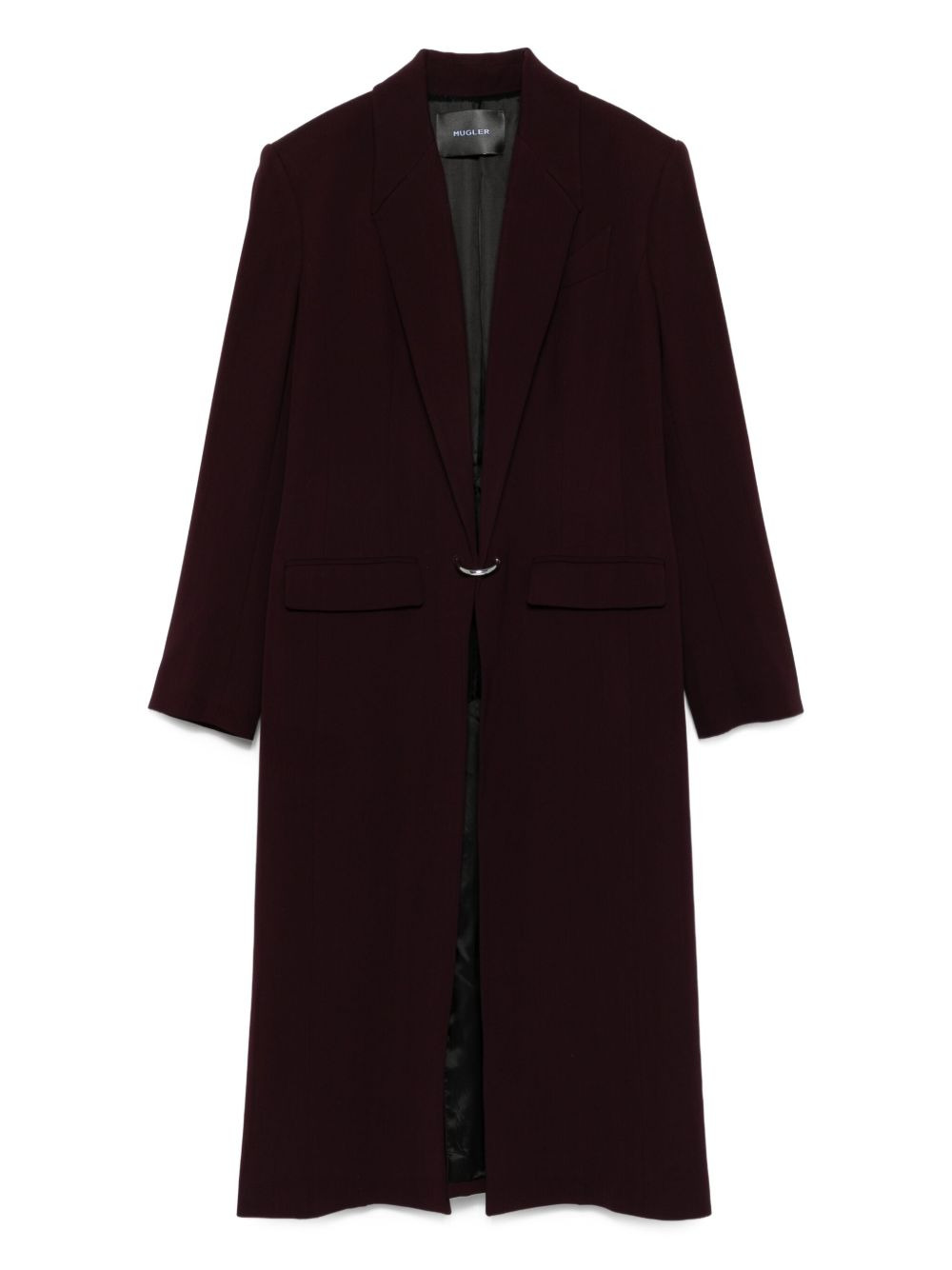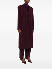 notched-lapel wool coat Highlights - Dark plum - Wool material - Notched lapels - Long sleeves - Metallic ring fastening Imported Composition Outer: Viscose 78%, Virgin Wool 22% Lining: Cupro 100% SIZE & FIT Model measurements Height 5 ft 10 in(1.77 m) Bust/Chest 32.28 in(82 cm) Hips 35.03 in(89 cm) Waist 25.19 in(64 cm) Washing instructions Dry Clean Only