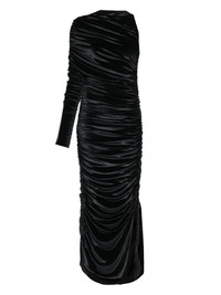 one-shoulder draped midi dress Highlights - Black - Velvet texture - One-shoulder neckline - Long sleeve - Draped bodice - Side slit Imported Composition Polyester 91%, Elastane 9% SIZE & FIT Model measurements Height 5 ft 9 in(1.75 m) Bust/Chest 34.64 in(88 cm) Hips 36.61 in(93 cm) Waist 26.37 in(67 cm) Washing instructions Dry Clean Only