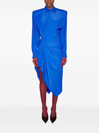 padded-shoulder asymmetrical dress Highlights - Blue - Padded shoulders - Asymmetrical hem - Draped detail Imported Composition Fabric 100% Washing instructions Read Manufacturer Guidelines