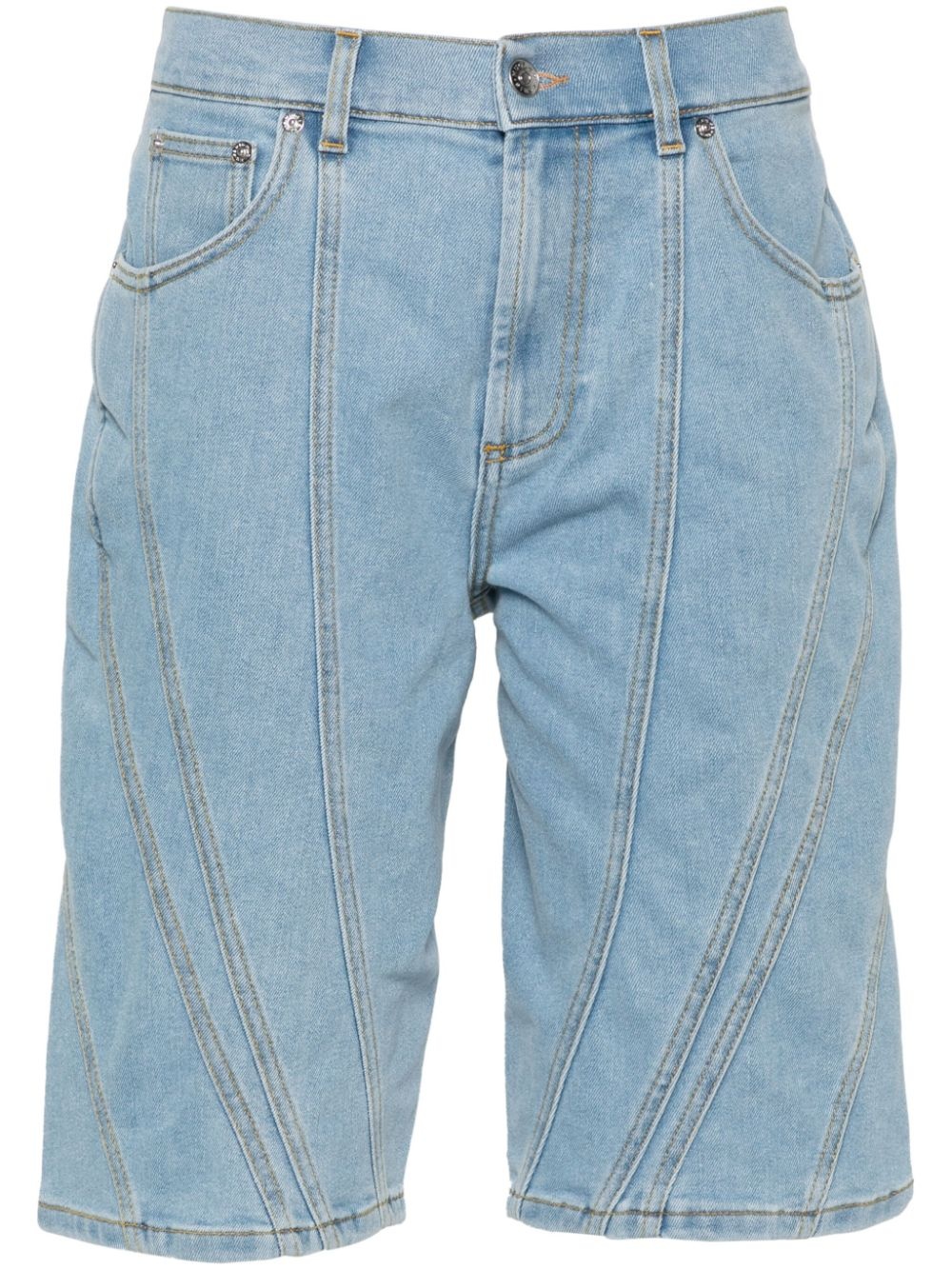 panelled denim shorts Highlights - Light blue - Cotton blend - Washed denim - Panelled design - Belt loops - Classic five pockets - Logo applique to the rear - Front button and zip fastening with logo-embossed button Made in Italy Composition Cotton 72%, Elastomultiester 28% SIZE & FIT Model measurements Height 5 ft 10 in(1.78 m) Bust/Chest 32.67 in(83 cm) Hips 35.43 in(90 cm) Waist 23.22 in(59 cm) FittingInformation Designed with a boyfriend cut, these jeans fit close at the waist and offer a roomy fit and comfortable fit over the leg Constructed from stretch denim, this piece offers a stretch fit with durability This piece fits true to size – take your usual size Washing instructions Dry Clean Only