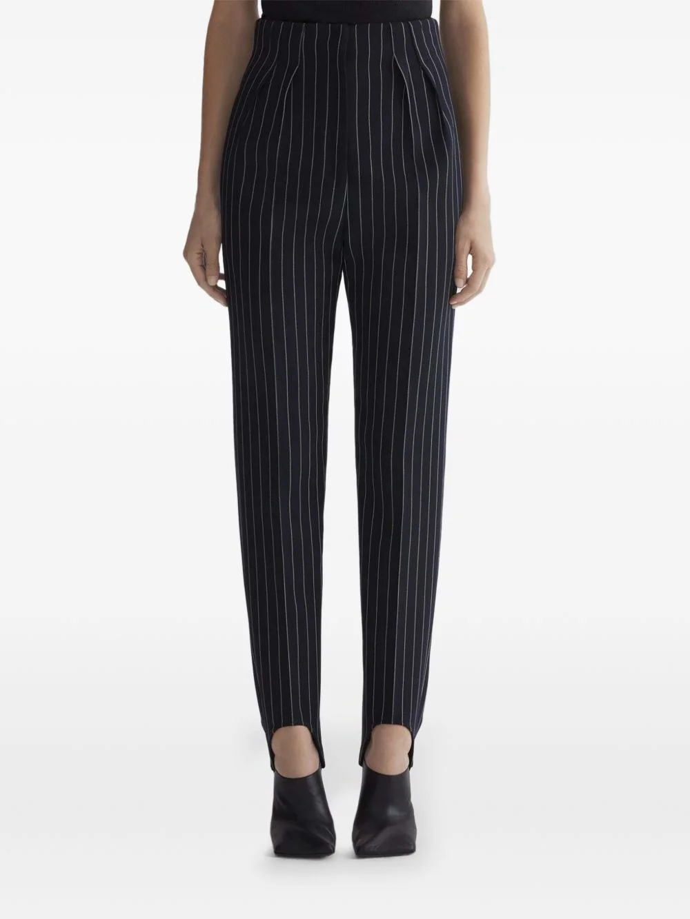 pinstriped slit hem trousers Highlights - Blue - Pinstriped - Slit hem - High-waisted - Concealed side zip fastening Imported Composition Fabric 100% Washing instructions Read Manufacturer Guidelines