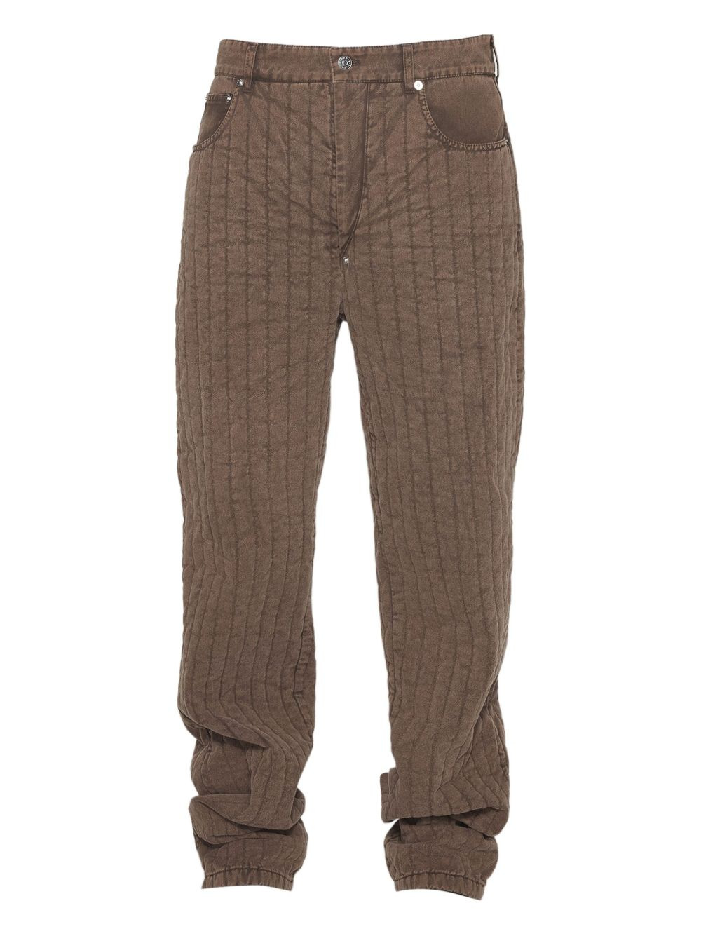 quilted panel trousers Highlights - Brown - Quilted panels - Straight leg - Five-pocket design - Button fly - Mid-rise waist Imported Composition Cotton 100% Washing instructions Read Manufacturer Guidelines