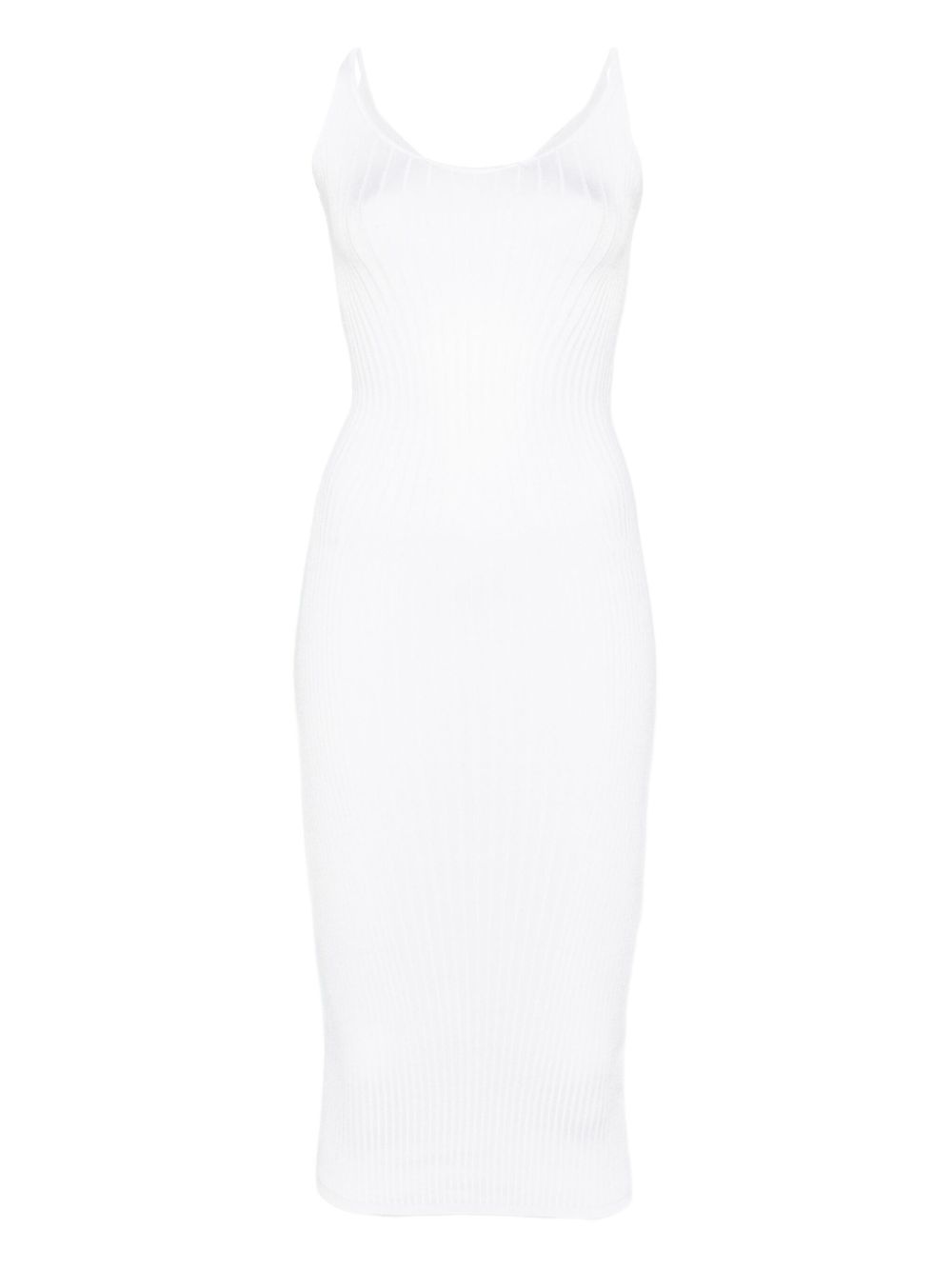 ribbed midi dress Highlights - White - Ribbed texture - Sleeveless - Midi length Imported Composition Rayon 87%, Nylon 11%, Elastane 2% SIZE & FIT Model measurements Height 5 ft 10 in(1.79 m) Bust/Chest 31.88 in(81 cm) Hips 35.43 in(90 cm) Waist 23.62 in(60 cm) Washing instructions Machine Wash