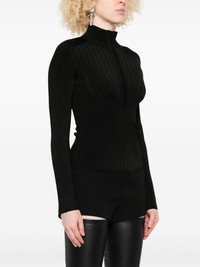 ribbed mock-neck sweater Highlights Imported Composition Rayon 87%, Recycled Nylon 11%, Elastane 2% SIZE & FIT Model measurements Height 5 ft 9 in(1.75 m) Bust/Chest 34.64 in(88 cm) Hips 36.61 in(93 cm) Waist 26.37 in(67 cm)