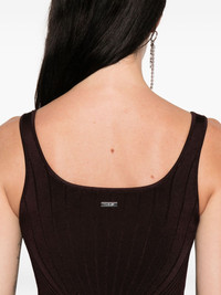 ribbed scoop-neck top Highlights - Purple - Ribbed texture - Scoop neck - Sleeveless - Straight hemline Imported Composition Rayon 87%, Nylon 11%, Elastane 2% SIZE & FIT Model measurements Height 5 ft 10 in(1.78 m) Bust/Chest 33.46 in(85 cm) Hips 36.22 in(92 cm) Waist 23.22 in(59 cm) Washing instructions Machine Wash