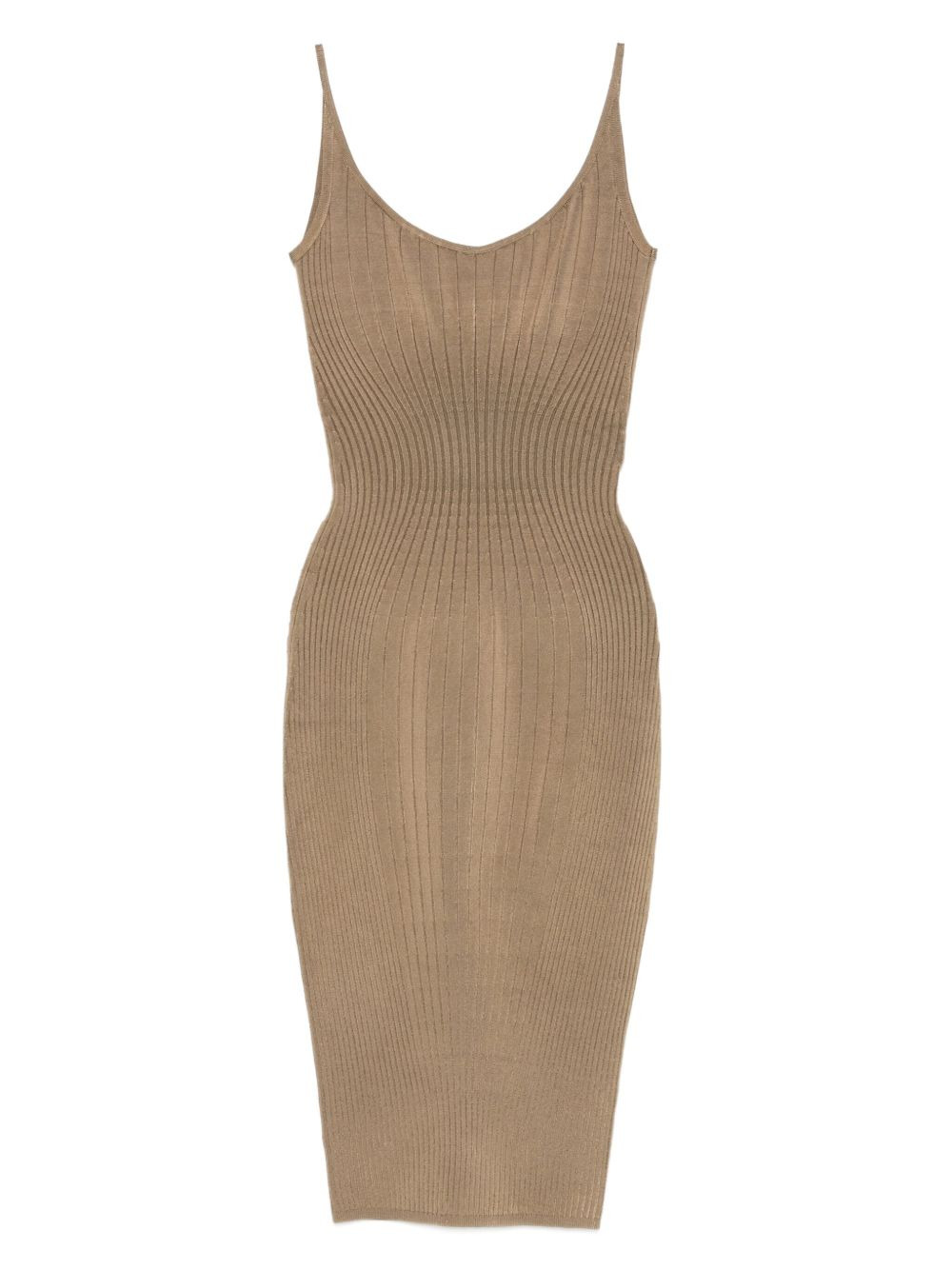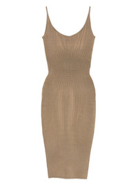 ribbed spaghetti-strap dress Highlights - Dark beige - Ribbed texture - Spaghetti straps - Straight hem - Midi length Imported Composition Rayon 87%, Nylon 11%, Elastane 2% SIZE & FIT Model measurements Height 5 ft 10 in(1.79 m) Bust/Chest 31.88 in(81 cm) Hips 35.43 in(90 cm) Waist 23.62 in(60 cm) Washing instructions Machine Wash