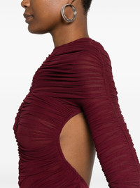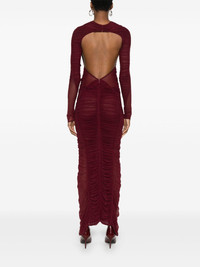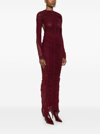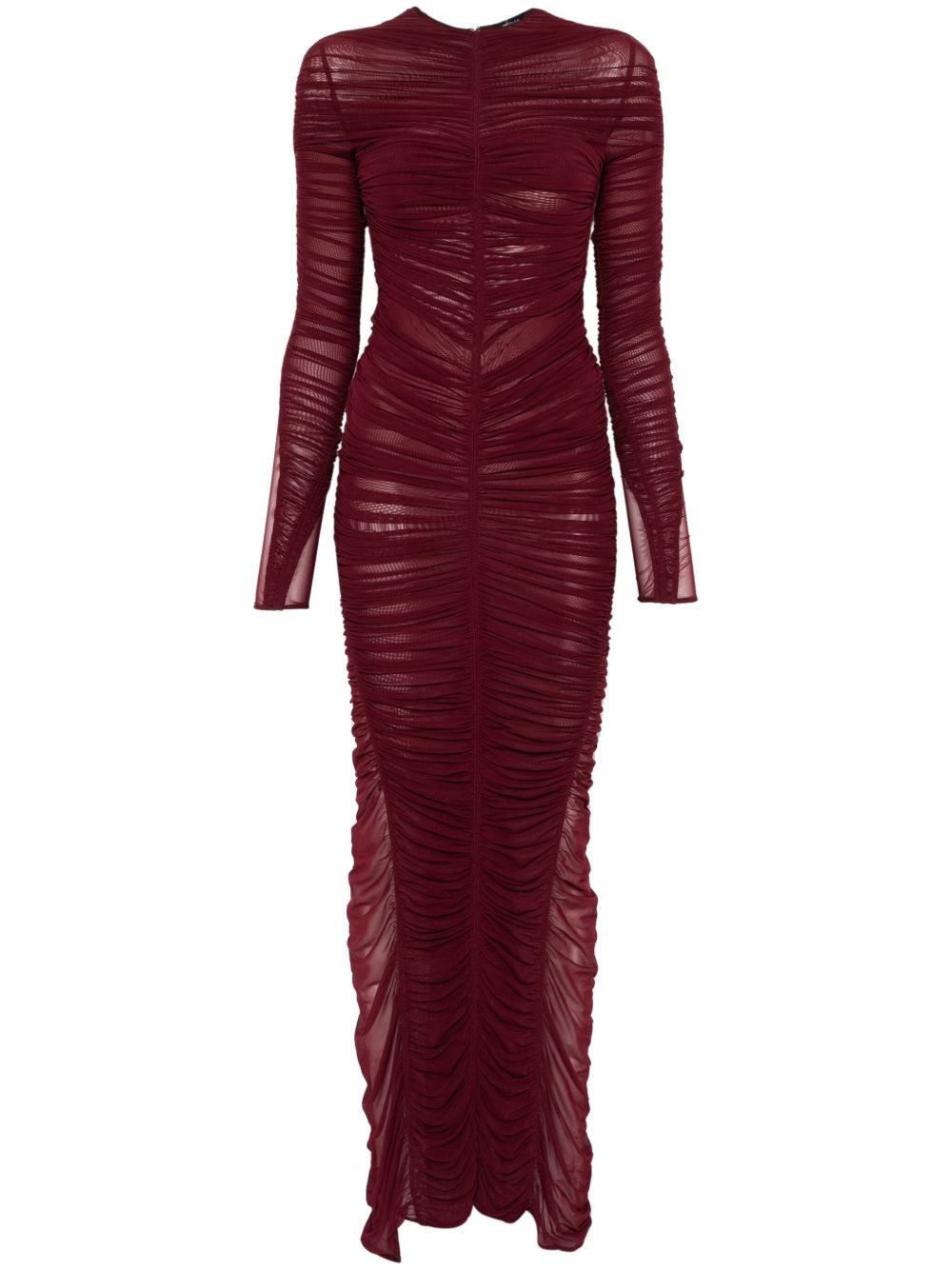 ruched maxi dress Highlights - Blood red - Stretch-design - Ruched bodice - Semi-sheer construction - Rear hook and eye fastening - Round neck - Long sleeves - Open back - Floor-length Imported Composition Polyamide 94%, Elastane 6% SIZE & FIT Model measurements Height 5 ft 11 in(1.8 m) Bust/Chest 31.49 in(80 cm) Hips 36.61 in(93 cm) Waist 24.4 in(62 cm) FittingInformation Designed for a close fit throughout Made from a midweight stretch fabric, this piece offers elasticity and flexibility when worn