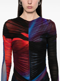 ruched mesh bodysuit Highlights - Black - Press-stud fastening - Round neck - Long sleeves - Just a reminder that this piece must be tried on over your own garments. Imported Composition Other fibres 100% SIZE & FIT Model measurements Height 5 ft 10 in(1.78 m) Bust/Chest 33.46 in(85 cm) Hips 36.22 in(92 cm) Waist 23.22 in(59 cm) FittingInformation Designed for a close fit throughout Made from a lightweight stretch fabric, this piece offers elasticity and flexibility when worn