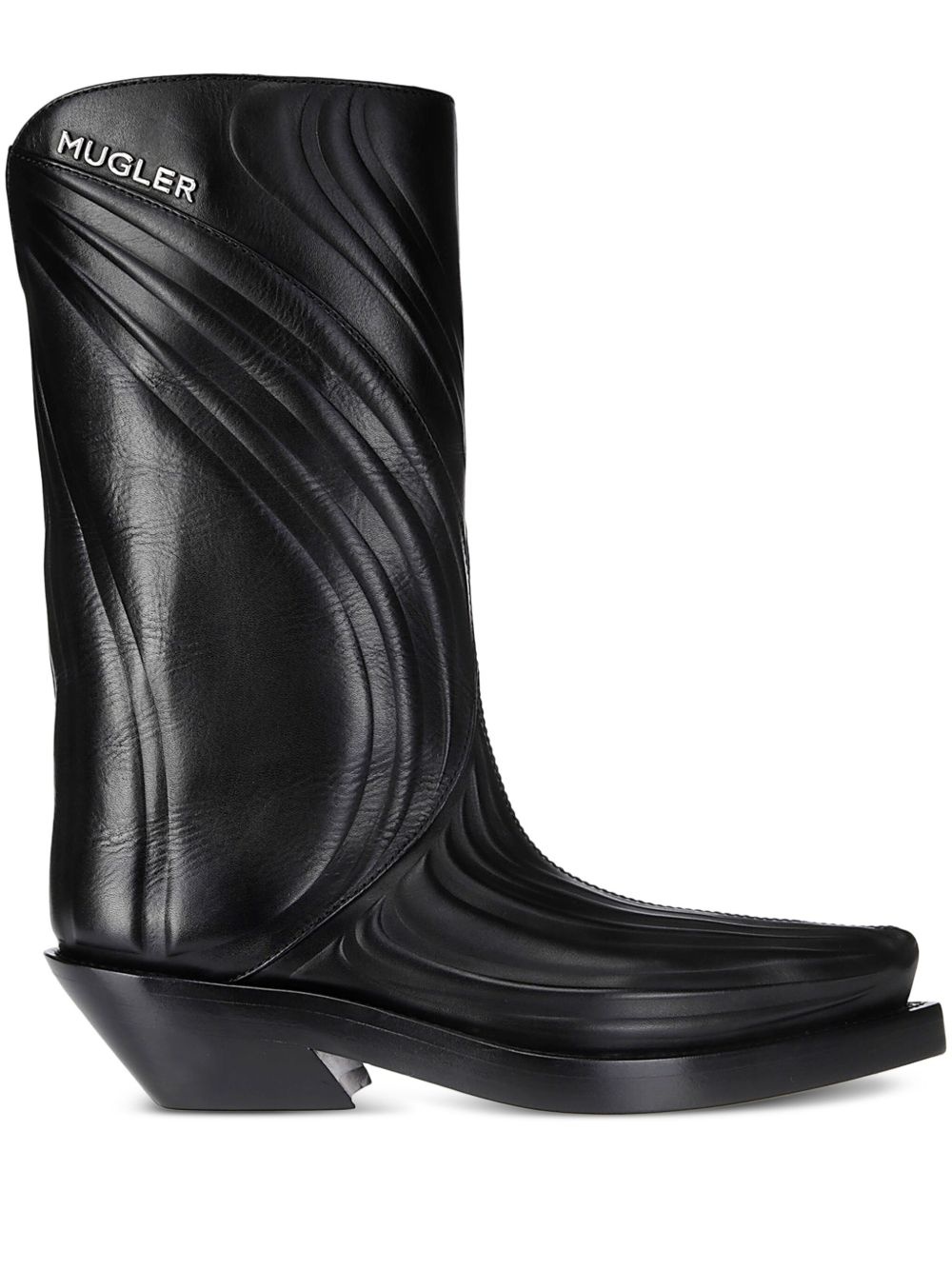 Santiag boots Highlights - Black - Calf leather - Embossed finish - 55mm low heel - Applique logo - Leather sole - Mid-calf length - Slip-on style Made in Italy Composition Sole: Calf Leather 100% Lining: Calf Leather 100% Outer: Goat Skin 100% SIZE & FIT Measurement HEEL 2.16 in(5.5 cm)