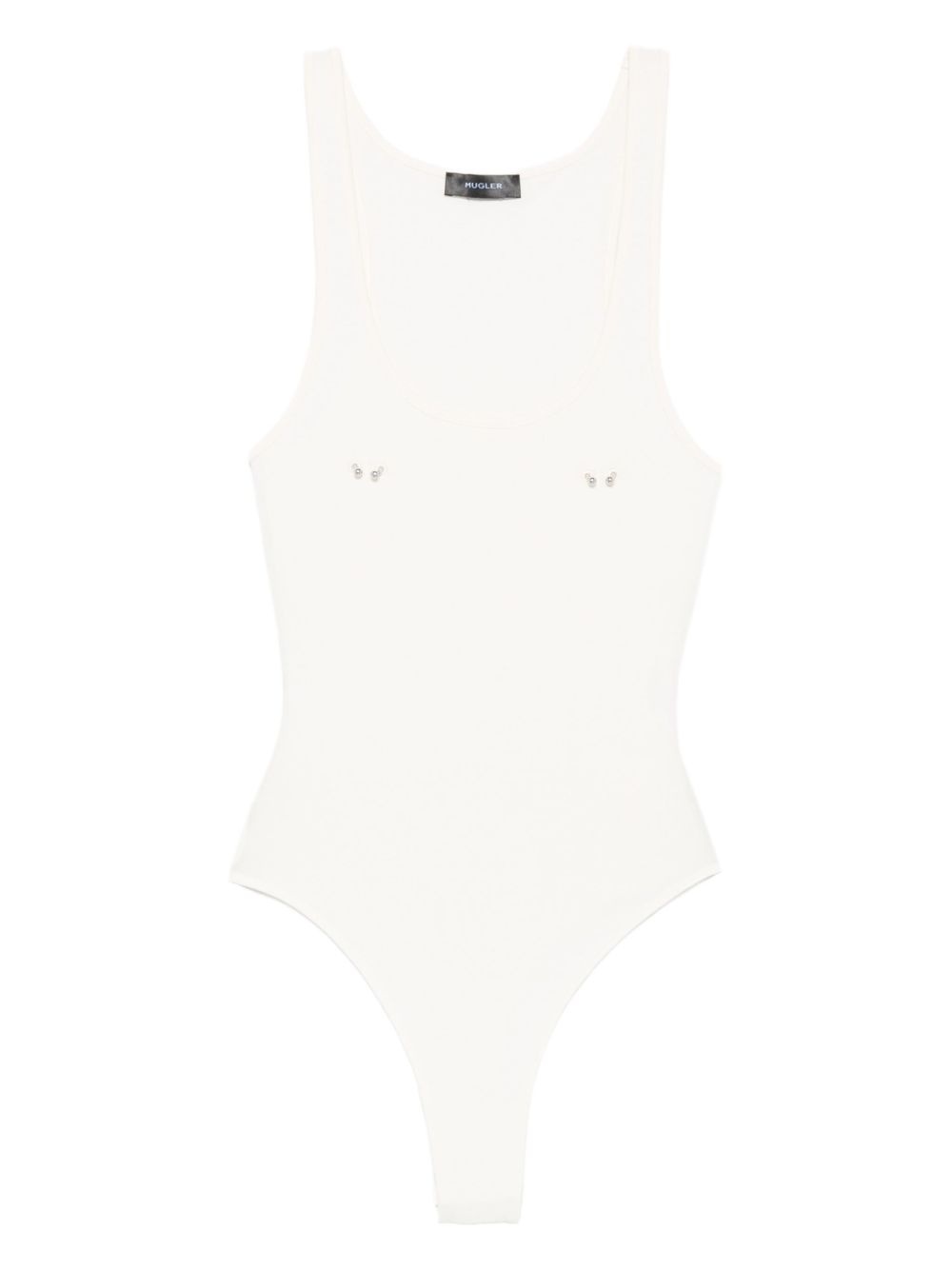 scoop-neck embellished bodysuit Highlights - White - Scoop neck - Sleeveless - Embellished chest - Body-hugging - Just a reminder that this piece must be tried on over your own garments. Imported Composition Organic Cotton 91%, Elastane 9% SIZE & FIT Model measurements Height 5 ft 10 in(1.78 m) Bust/Chest 33.46 in(85 cm) Hips 36.22 in(92 cm) Waist 23.22 in(59 cm) Washing instructions Machine Wash