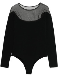 sheer-panelled bodysuit Highlights - Black - Press-stud fastening - Crew neck - Long sleeves - Just a reminder that this piece must be tried on over your own garments. Imported Composition Viscose 83%, Polyester 17% SIZE & FIT Model measurements Height 5 ft 10 in(1.77 m) Bust/Chest 29.92 in(76 cm) Hips 34.25 in(87 cm) Waist 23.62 in(60 cm) FittingInformation Designed for a close fit throughout Made from a midweight non-stretch fabric, this piece offers minimal elasticity when worn