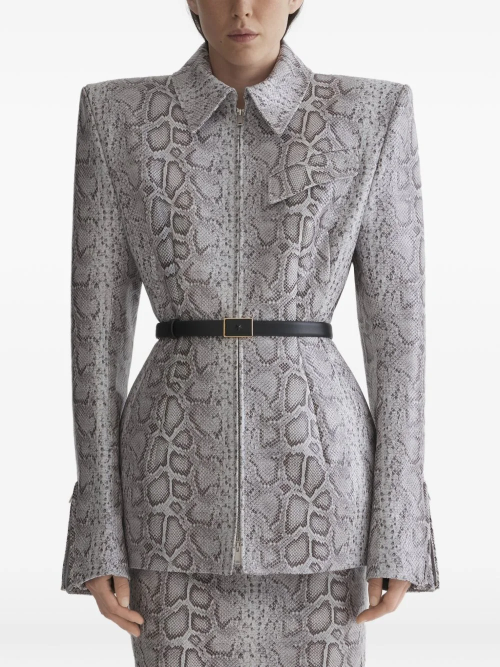 snake-print zip jacket Highlights - Grey - Snake-print - Pointed collar - Zip fastening - Structured shoulders - Long sleeves Made in Italy Composition Fabric 100%