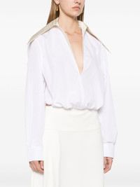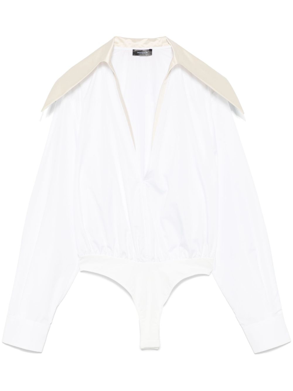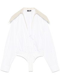 spiky satin collar bodysuit Highlights - White - Recycled polyester - Satin pointed collar - Press-stud fastening - Plunging v-neck - Long sleeves - Buttoned cuffs - Unlined - Just a reminder that this piece must be tried on over your own garments. Imported Composition Recycled Polyester 100%, Polyamide 78%, Elastane 22% SIZE & FIT Model measurements Height 5 ft 9 in(1.75 m) Bust/Chest 31.88 in(81 cm) Hips 34.64 in(88 cm) Waist 24.01 in(61 cm) FittingInformation Designed to be unstructured, offering a loose fit throughout Made from a midweight non-stretch fabric Washing instructions Dry Clean Only