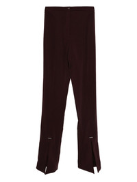 split-hem trousers Highlights - Dark plum - Front splits - High waist - Zip fly Imported Composition Viscose 96%, Elastane 4% SIZE & FIT Model measurements Height 5 ft 10 in(1.79 m) Bust/Chest 31.88 in(81 cm) Hips 35.43 in(90 cm) Waist 23.62 in(60 cm) Washing instructions Dry Clean Only