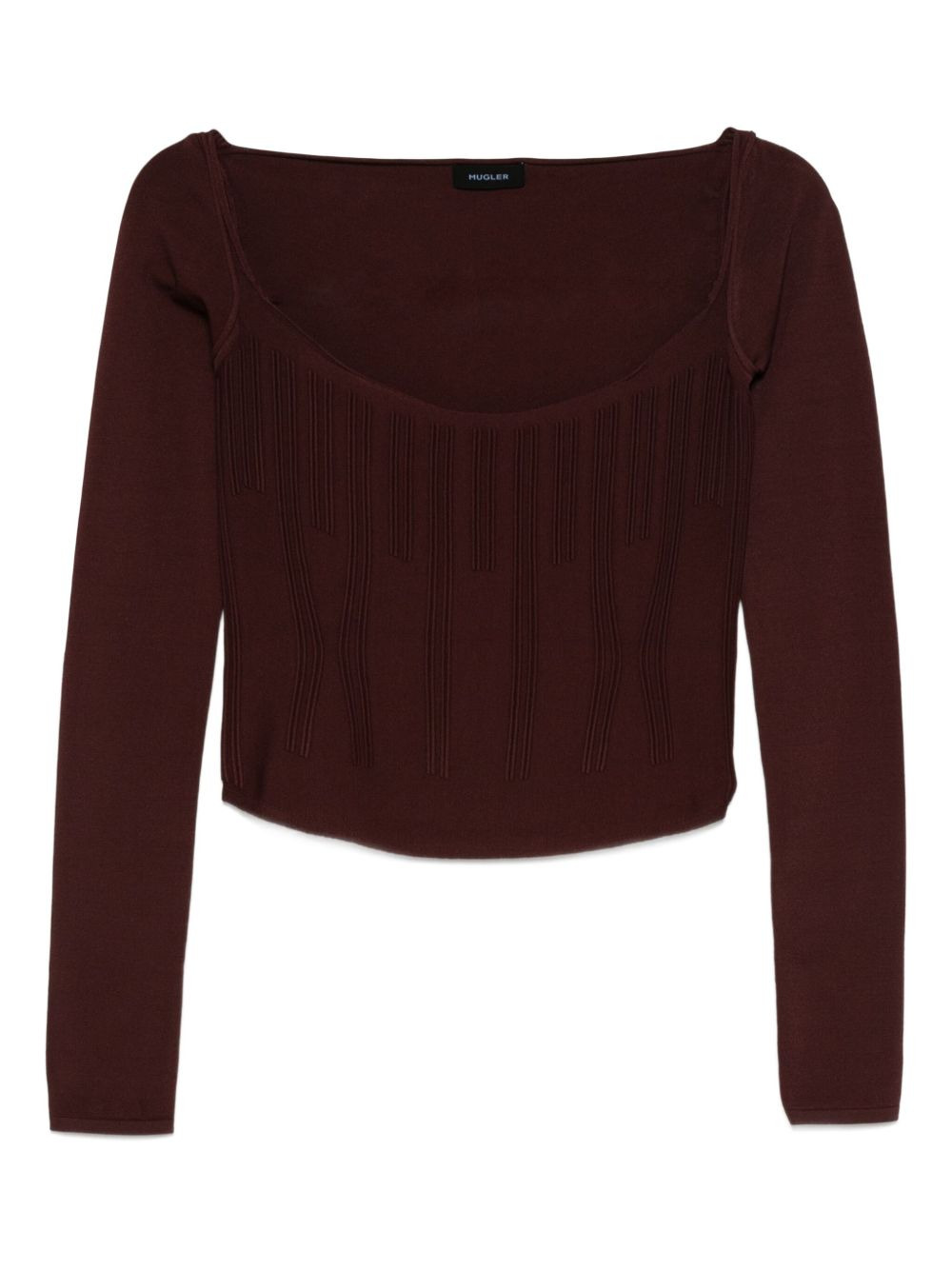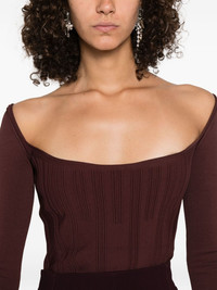 square-neck ribbed top Highlights - Burgundy red - Square neck - Ribbed texture - Long sleeves Imported Composition Viscose 83%, Polyester 17% SIZE & FIT Model measurements Height 5 ft 10 in(1.79 m) Bust/Chest 31.88 in(81 cm) Hips 35.43 in(90 cm) Waist 23.62 in(60 cm) Washing instructions Machine Wash
