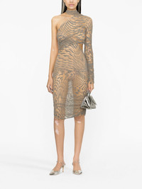 Star Mesh one-shoulder dress This Star Mesh dress from Mugler is saturated with a celestial motif in a graphite-grey hue, referencing the label’s statement aesthetic. The cut-out detailing and asymmetric one-shoulder silhouette further contribute to the eye-catching appeal. Highlights - Graphite grey - Mesh - Stretch-design - Star print - Cut-out detailing - Asymmetric design - Halterneck tie fastening - One-shoulder - Single long sleeve - Straight hem Imported Composition Polyamide 77%, Spandex/Elastane 23% SIZE & FIT Model measurements Height 5 ft 10 in(1.77 m) Bust/Chest 32.67 in(83 cm) Hips 35.43 in(90 cm) Waist 23.62 in(60 cm) FittingInformation Designed for a close fit throughout Made from a lightweight stretch fabric, this piece offers elasticity and flexibility when worn This piece fits true to size – take your usual size