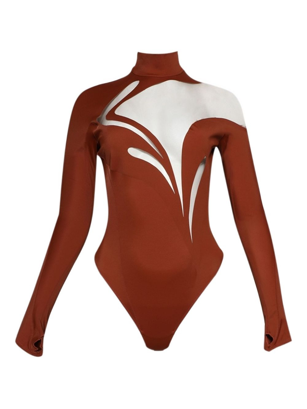 swirly high-neck bodysuit Highlights - Sienna brown - High neck - Long sleeves - Just a reminder that this piece must be tried on over your own garments. Imported Composition Fabric 100% SIZE & FIT FittingInformation Designed for a very close and sculpting fit The sleeves are constructed with additional length and built-in thumb loops that allow for movement and a secure fit Made from a midweight stretch fabric, this piece offers elasticity and flexibility when worn Washing instructions Read Manufacturer Guidelines