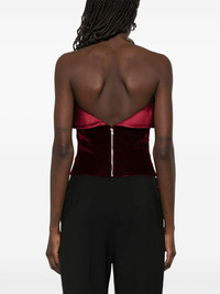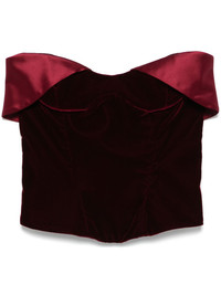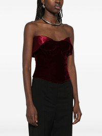 velvet corset top Highlights - Blood red - Rear zip fastening - Bustier-style neckline - Strapless Imported Composition Lining: Cupro 100% Outer: Viscose 72%, Rayon 66%, Cupro 32%, Silk 28%, Spandex/Elastane 2% SIZE & FIT Model measurements Height 5 ft 11 in(1.8 m) Bust/Chest 32.67 in(83 cm) Hips 36.22 in(92 cm) Waist 24.4 in(62 cm) FittingInformation Designed for a close fit throughout Made from a midweight fabric Washing instructions Dry Clean Only