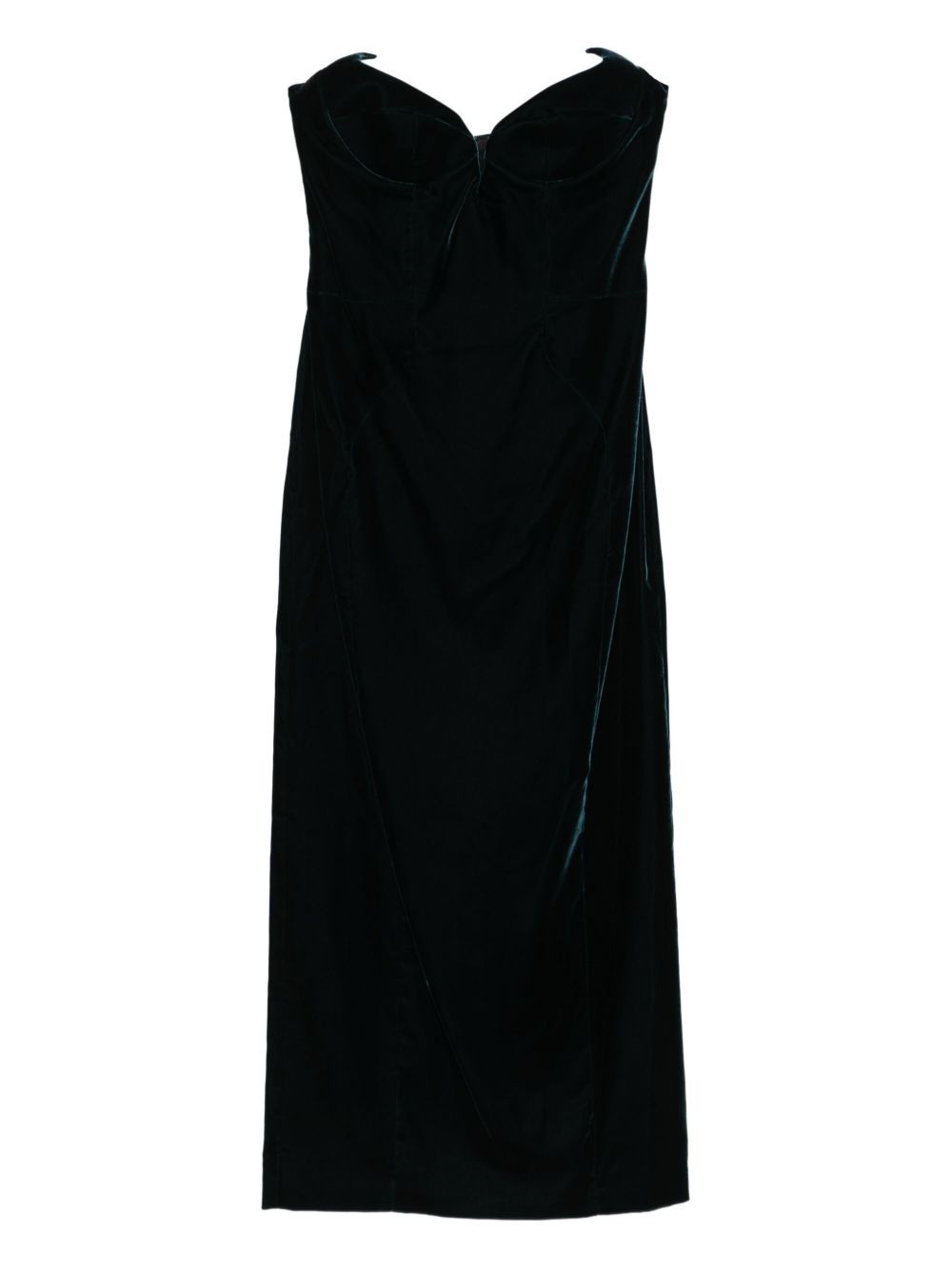 velvet strapless midi dress Highlights - Dark green - Velvet texture - Strapless neckline - Midi length Imported Composition Outer: Polyamide 100%, Silk 78%, Rayon 66%, Cupro 32%, Polyester 22%, Elastane 2% Lining: Viscose 57%, Elastodiene 43% SIZE & FIT Model measurements Height 5 ft 9 in(1.75 m) Bust/Chest 32.67 in(83 cm) Hips 36.22 in(92 cm) Waist 24.8 in(63 cm) Washing instructions Do Not Wash/Do Not Dry Clean