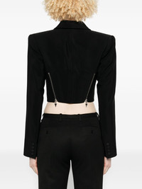 zip-up jacket Highlights - Black - Textured finish - Front zip fastening - V-neck - Notched lapels - Shoulder pads - Long sleeves - Buttoned cuffs - Zip details - Branded zip puller - Full lining - Curved hem - Cropped Imported Composition Lining: Cupro 100% Outer: Viscose 76%, Virgin Wool 24% SIZE & FIT Model measurements Height 5 ft 9 in(1.75 m) Bust/Chest 34.64 in(88 cm) Hips 36.61 in(93 cm) Waist 26.37 in(67 cm) FittingInformation Designed for a close fit throughout The internal shoulder pads offer a structured shape Made from a midweight non-stretch fabric