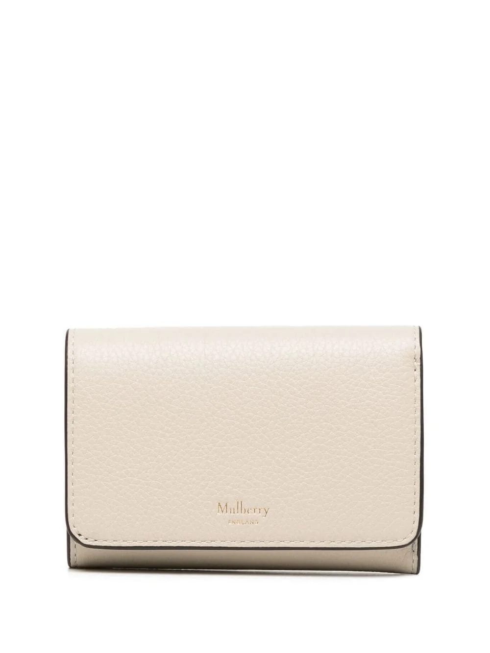 Continental trifold wallet Designed by Mulberry, the Continental wallet is presented with a practical trifold design. Boasting a minimal completion, it is crafted from cream-hued leather in a grained texture. Highlights - Beige - Cream white - Leather - Tri-fold design - Grained texture - Logo print to the front - Contrasting trim - Gold-tone hardware - Internal card slots - Rear zip fastening - Foldover top with press-stud fastening Imported Composition Leather 100% SIZE & FIT Measurement DEPTH 1.18 in(3 cm) HEIGHT 3.14 in(8 cm) LENGTH 4.72 in(12 cm) WIDTH 4.72 in(12 cm)