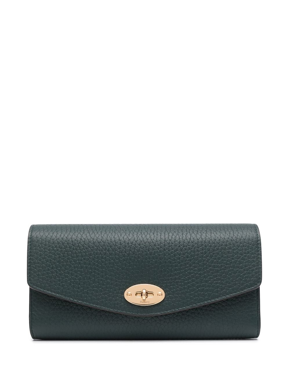 Darley continental wallet dark green leather foldover top twist-lock fastening zip-fastening compartment internal card slots internal slip pocket internal logo stamp slip pocket to the rear gold-tone hardware Made in United Kingdom Composition Leather 100% SIZE & FIT Measurement DEPTH 1.18 in(3 cm) HEIGHT 3.93 in(10 cm) WIDTH 7.48 in(19 cm)