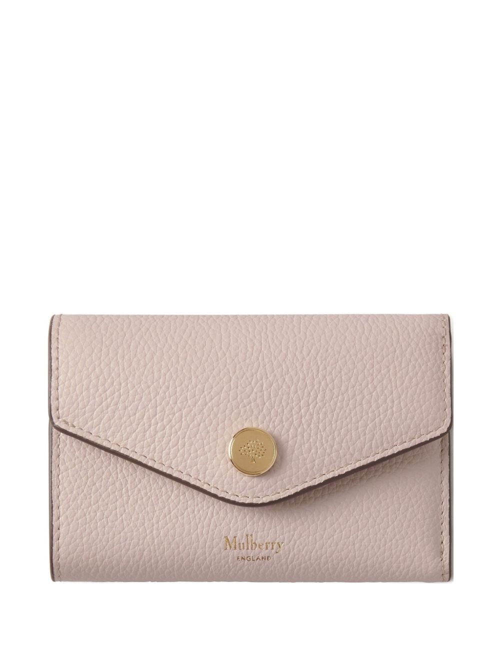 folded grained-leather wallet Highlights - Blossom pink - Grain leather - Multiple card slots - Envelope flap - Gold-tone press stud - Zip pocket Imported Composition Outer: Leather 100% Lining: Nappa Leather 100%, Fabric 100% SIZE & FIT Measurement DEPTH 1.25 in(3.2 cm) LENGTH 3.26 in(8.3 cm) WIDTH 4.25 in(10.8 cm)