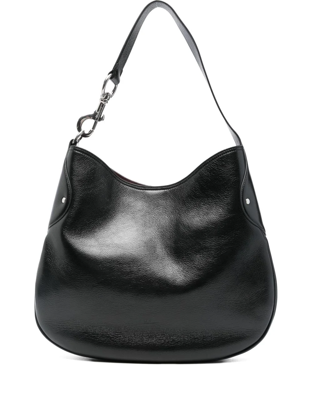 leather shoulder bag Highlights - Black - Top handle - Silver-tone hardware - Rivet detail - Internal slip pocket - Magnetic fastening Imported Composition Outer: Calf Leather 100% SIZE & FIT Model measurements Height 5 ft 10 in(1.77 m) Bust/Chest 32.28 in(82 cm) Hips 35.03 in(89 cm) Waist 25.19 in(64 cm)