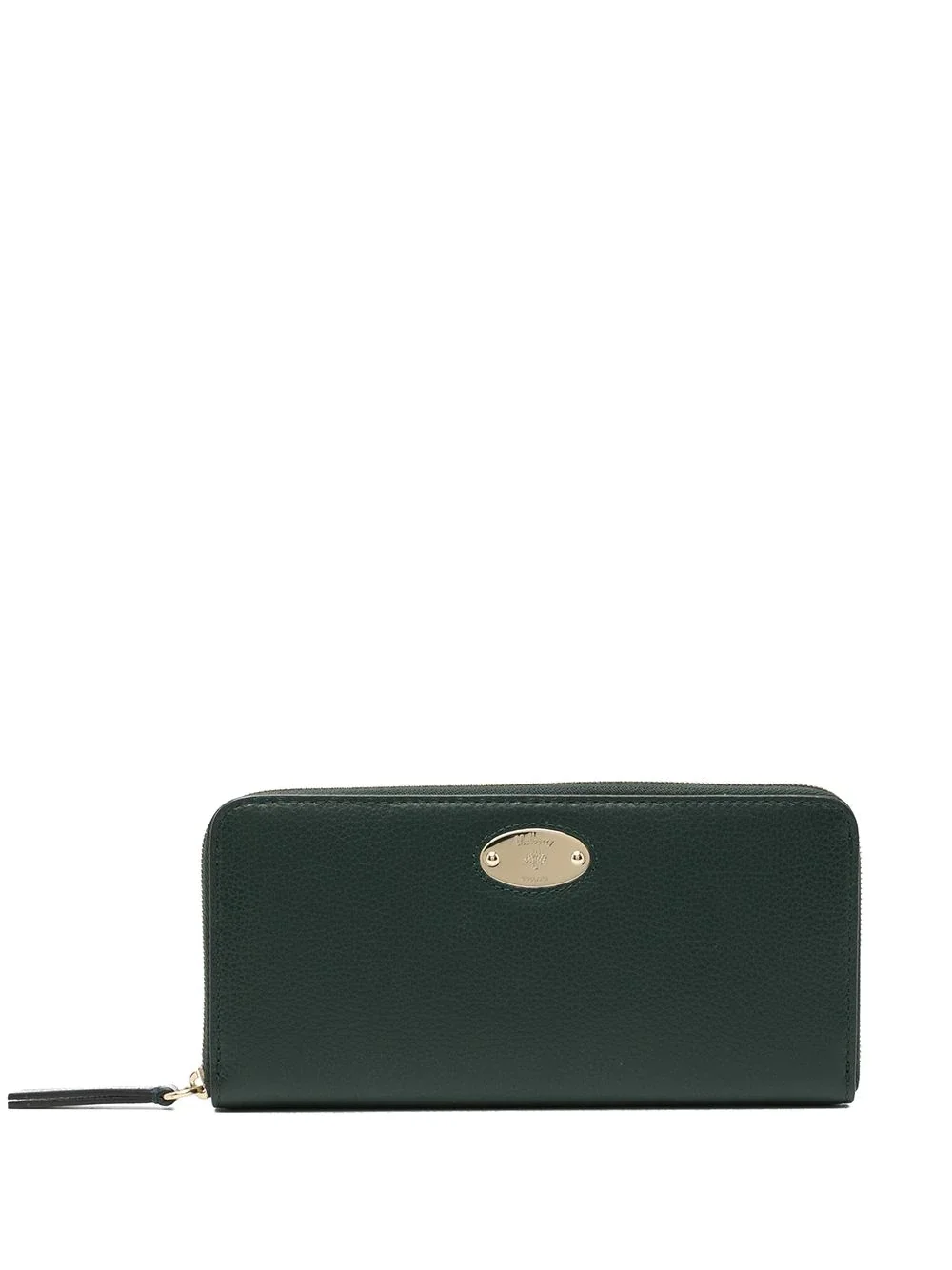 logo-plaque zipped purse green leather all-around zip fastening gold-tone logo plaque internal card slots internal zip pocket Made in United Kingdom Composition Leather 100% SIZE & FIT Measurement LENGTH 3.54 in(9 cm) WIDTH 7.48 in(19 cm)