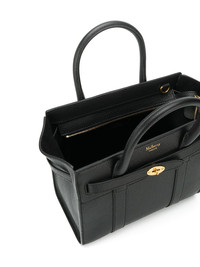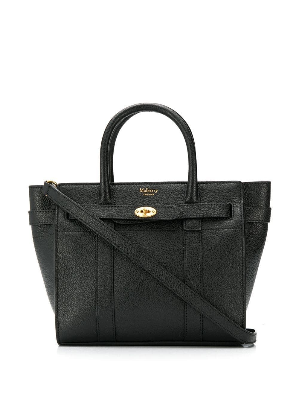 mini zipped Bayswater tote Black leather mini zipped Bayswater tote from Mulberry featuring round top handles, an engraved logo, a top zip fastening, gold-tone hardware and an adjustable shoulder strap. Imported Composition Outer: Calf Leather 100% Lining: Calf Leather 100% SIZE & FIT Model measurements Height 5 ft 10 in(1.77 m) Bust/Chest 31.49 in(80 cm) Hips 35.43 in(90 cm) Waist 23.22 in(59 cm) Measurement DEPTH 4.92 in(12.5 cm) HEIGHT 8.26 in(21 cm) WIDTH 9.05 in(23 cm)
