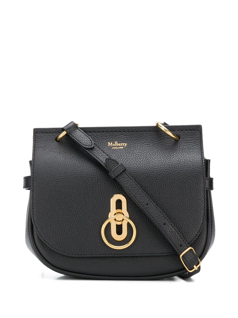 small Amberly satchel bag Black leather small Amberly satchel bag from Mulberry featuring a textured style, a front centre logo stamp, gold-tone hardware, a foldover top with flip-lock closure, a main internal compartment, an internal logo stamp and an adjustable shoulder strap. Made in Italy Composition Outer: Calf Leather 100% SIZE & FIT Model measurements Height 5 ft 10 in(1.78 m) Bust/Chest 31.49 in(80 cm) Hips 36.22 in(92 cm) Waist 25.59 in(65 cm) Measurement DEPTH 3.14 in(8 cm) HEIGHT 7.08 in(18 cm) STRAP 21.65 in(55 cm) WIDTH 8.26 in(21 cm)