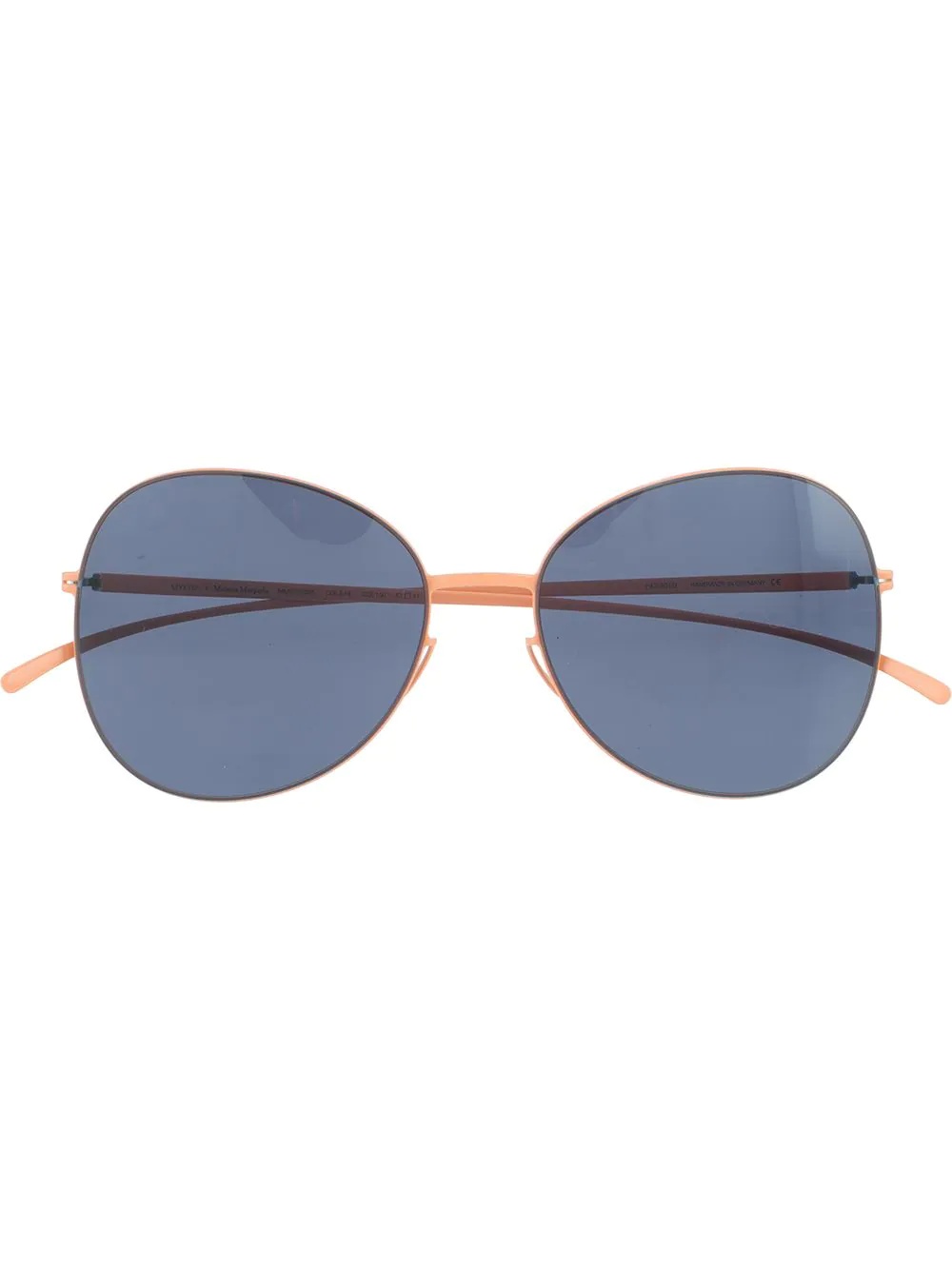 Esse pilot-frame sunglasses apricot stainless steel blue tinted lenses pilot frame These glasses come with a protective case. Imported Composition Body: stainless steel 100% SIZE & FIT Measurement Arm Length 5.51 in(14 cm) Lens Diameter 2.36 in(6 cm)