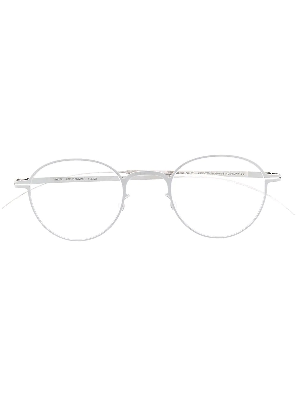 matte-effect round-frame glasses shiny silver metal matte effect clear lenses round frame raised bridge straight arms curved tips We know you'll look after them, but these glasses come with protection, just in case. Imported Composition Metal 100% SIZE & FIT Measurement Arm Length 5.31 in(13.5 cm) Bridge Width 0.86 in(2.2 cm) Lens Diameter 1.73 in(4.4 cm) Total Width 4.88 in(12.4 cm)