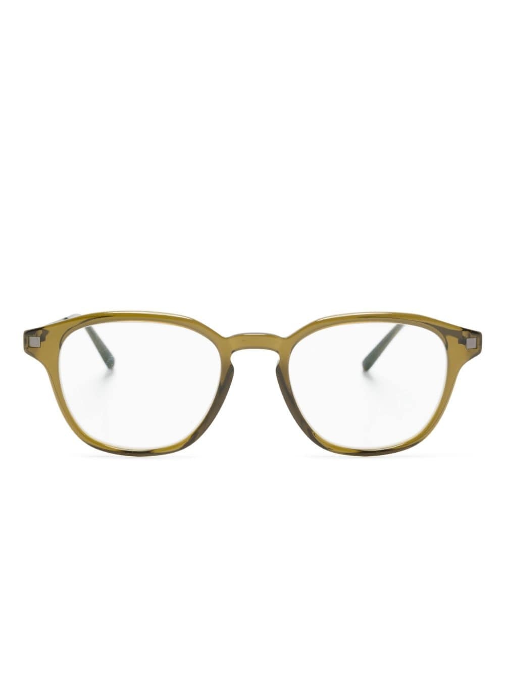Pana round-frame glasses Highlights - Olive green/gunmetal grey - Acetate/metal - Round frame - Clear lenses - Straight arms - Curved tips - These glasses come with a protective case. - All glasses from farfetch are sold as non-prescription frames. Imported Composition Acetate 100% SIZE & FIT Measurement Arm Length 5.7 in(14.5 cm) Bridge Width 0.78 in(2 cm) Lens Diameter 1.96 in(5 cm) WIDTH 5.51 in(14 cm)