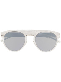round-frame tinted sunglasses silver-tone metal silver-tone hardware brushed effect round frame grey tinted lenses nose pads straight arms curved tips UV-protective lenses These glasses come with a protective case. Imported Composition Metal 100% SIZE & FIT Measurement Arm Length 5.9 in(15 cm) Bridge Width 0.55 in(1.4 cm) Lens Diameter 1.96 in(5 cm) Total Width 5.31 in(13.5 cm)