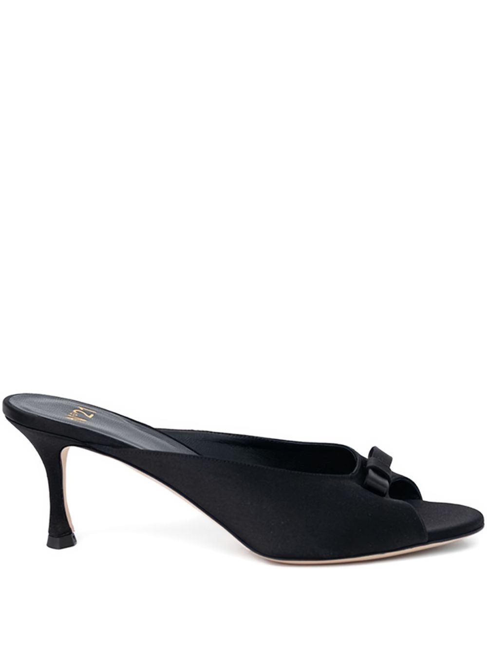 bow-embellished sandals Highlights - Black - Open toe - Bow detail at the front - Tapered heel - Slip-on design Made in Italy Composition Outer: Fabric 100% Sole: Calf Leather 100% Lining: Calf Leather 100%, Fabric 100%