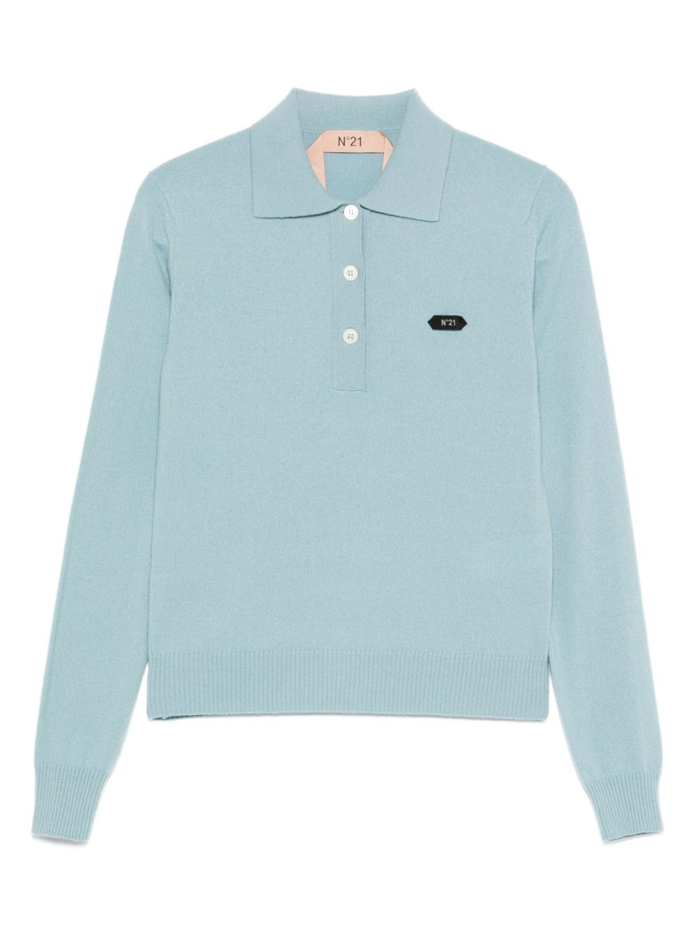 button-fastening polo top Highlights - Blue - Long sleeves - Button fastening - Ribbed hem - Logo patch Imported Composition Mother of Pearl 100%, Wool 100% SIZE & FIT Model measurements Height 5 ft 10 in(1.78 m) Bust/Chest 33.46 in(85 cm) Hips 36.22 in(92 cm) Waist 23.22 in(59 cm) Washing instructions Hand Wash